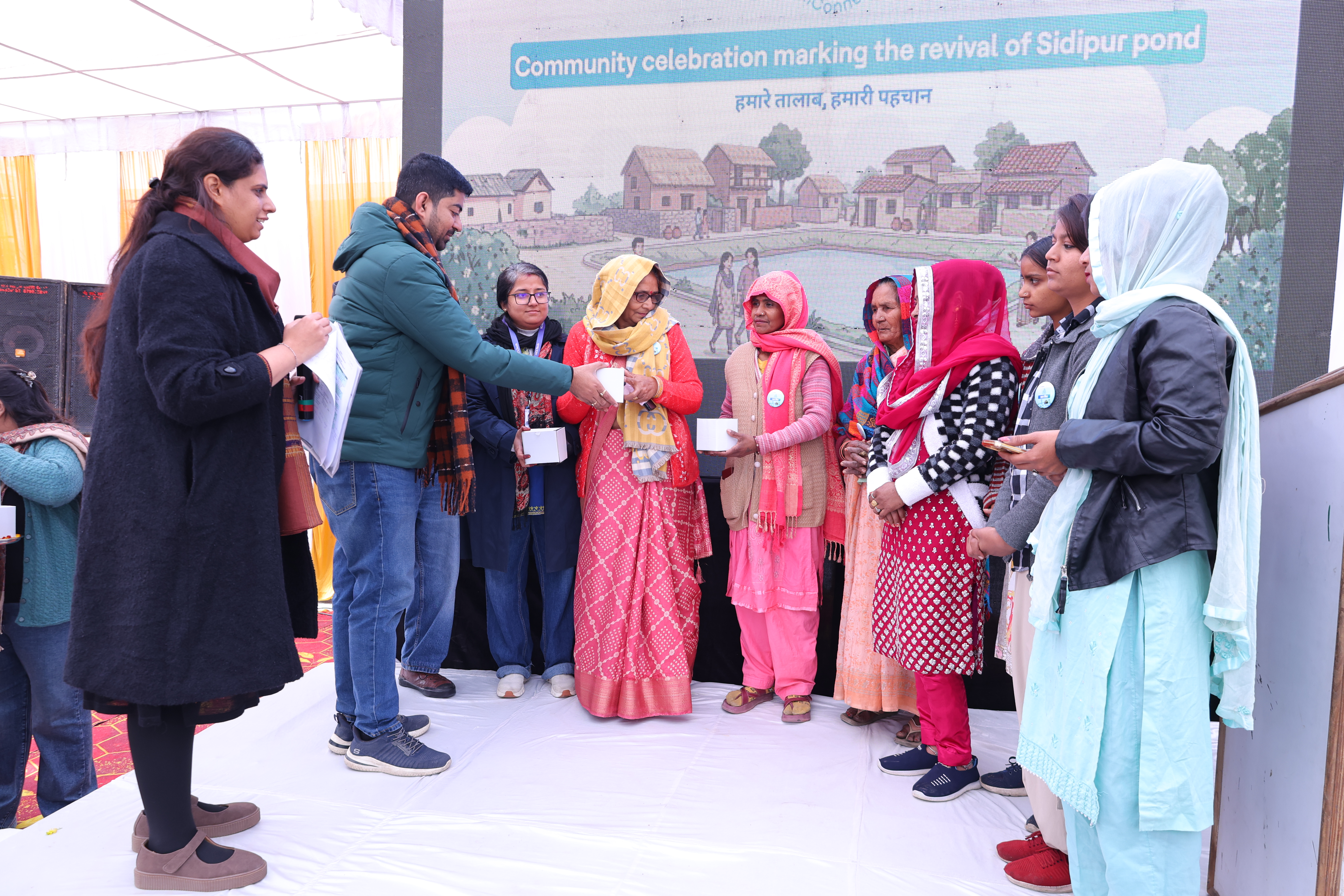The celebration featured a walk around the rejuvenated Sidipur Pond with Talaab Samiti members, a photo wall capturing the pond’s transformation, the unveiling of the Sidipur photobook, and the felicitation of community representatives and school children who participated in the Paani ki Paathshala initiative. The event concluded with renewed commitments from villagers and local institutions to sustain the restored ecosystem and safeguard Sidipur’s water future.